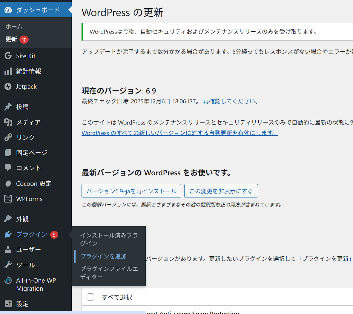 2025年12月3日(おそらく未明)にWordpressがバージョン6.9にアップデートされました。